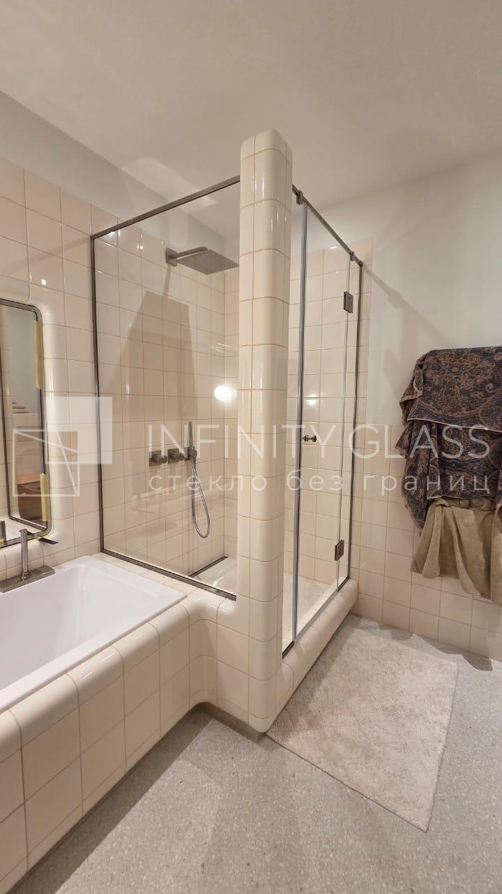 - сотрудниками осуществлено создание конструкции Распашная душевая перегородка из стекла - Мичуринская ул. по оптимальным качествам;