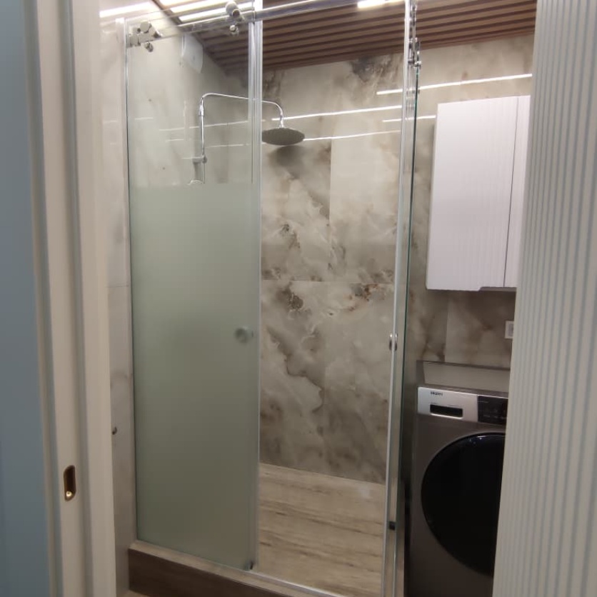 Гарантируем заказчикам выдающийся уровень качества и чудесный исход сделки. Есть множество факторов, почему и к нам обращаются для реализации таких изделий как Раздвижная душевая перегородка с матовым стеклом - ул. Седова:
