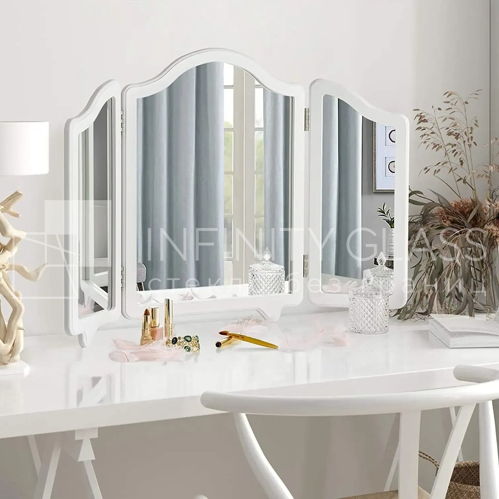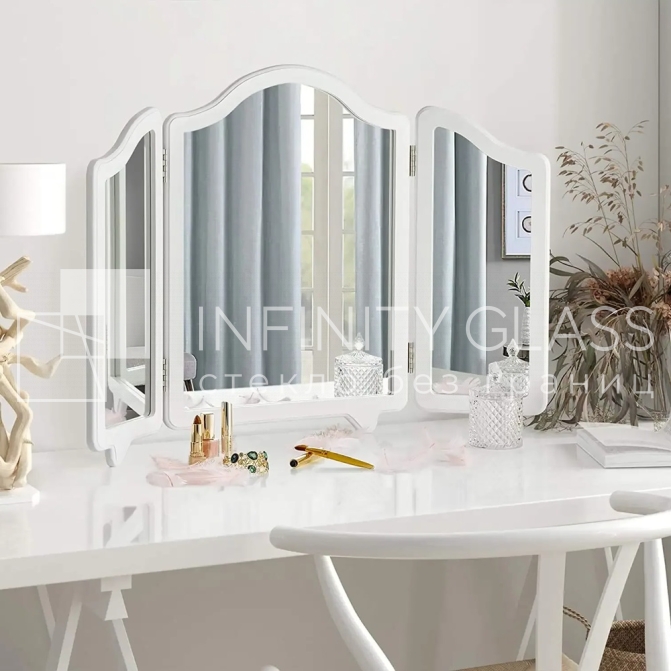 Предоставляем партнёрам несравненный уровень качества и замечательный финальный продукт. Вот почему и в нашу фирму пишут для изготовления таких изделий как зеркало трюмо настольное трехстворчатое: