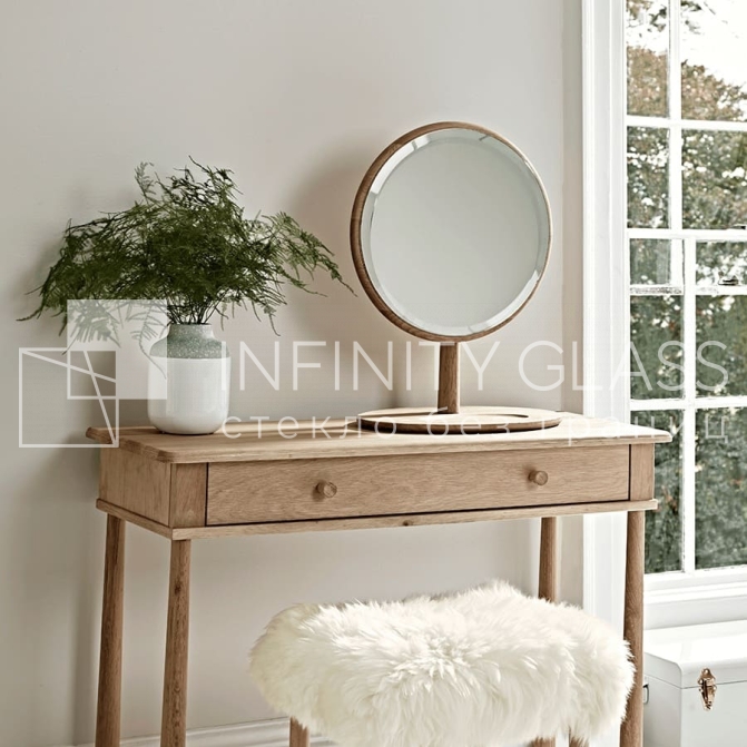 Мастерская Infinity Glass сдала заказчику прекрасный образец продукции — зеркало на туалетный столик на ножке. Все задачи в рамках продукта осуществлены оперативно, решение сделано на локальном производстве. Что было сделано: