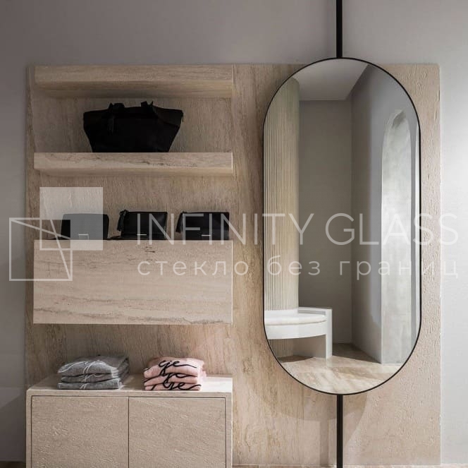 Обещаем заказчикам высокий уровень качества и замечательный итог. Вот почему и в Infinity Glass пишут для производства таких продуктов как зеркало в металлической раме на штанге: